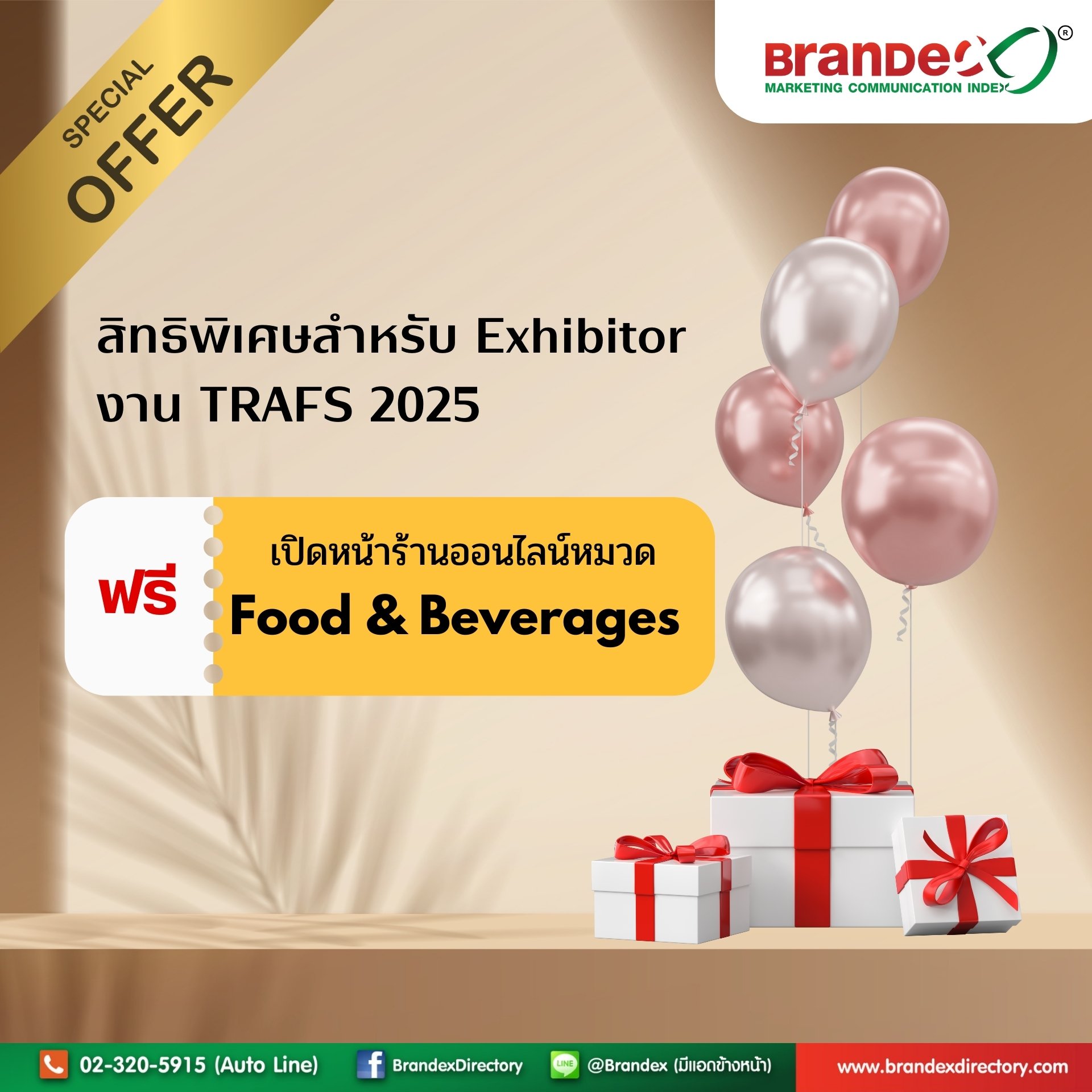 สิทธิพิเศษสำหรับ Exhibitor TRAFS 2025 เปิดหน้าร้านออนไลน์หมวด Food & Beverages ฟรีบน Brandex Directory
