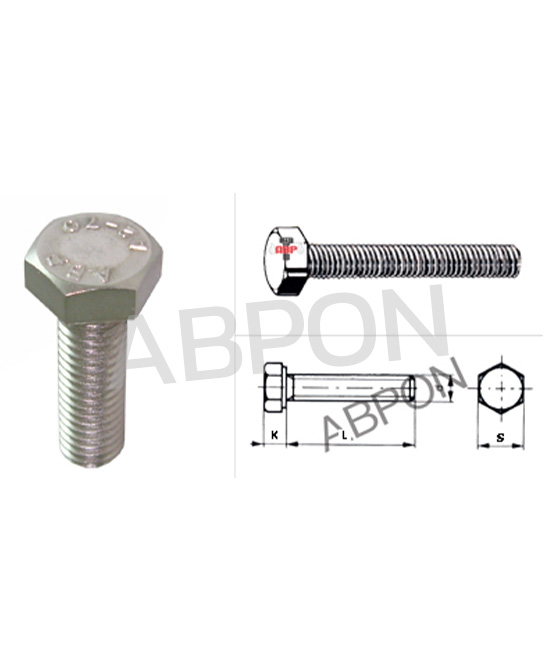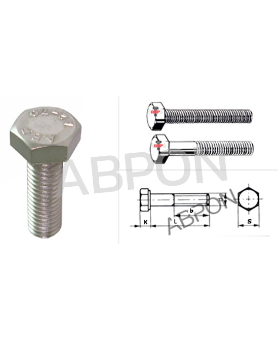 สกรูหัวเหลี่ยมเกลียวตลอด สแตนเลส 304 หุน
