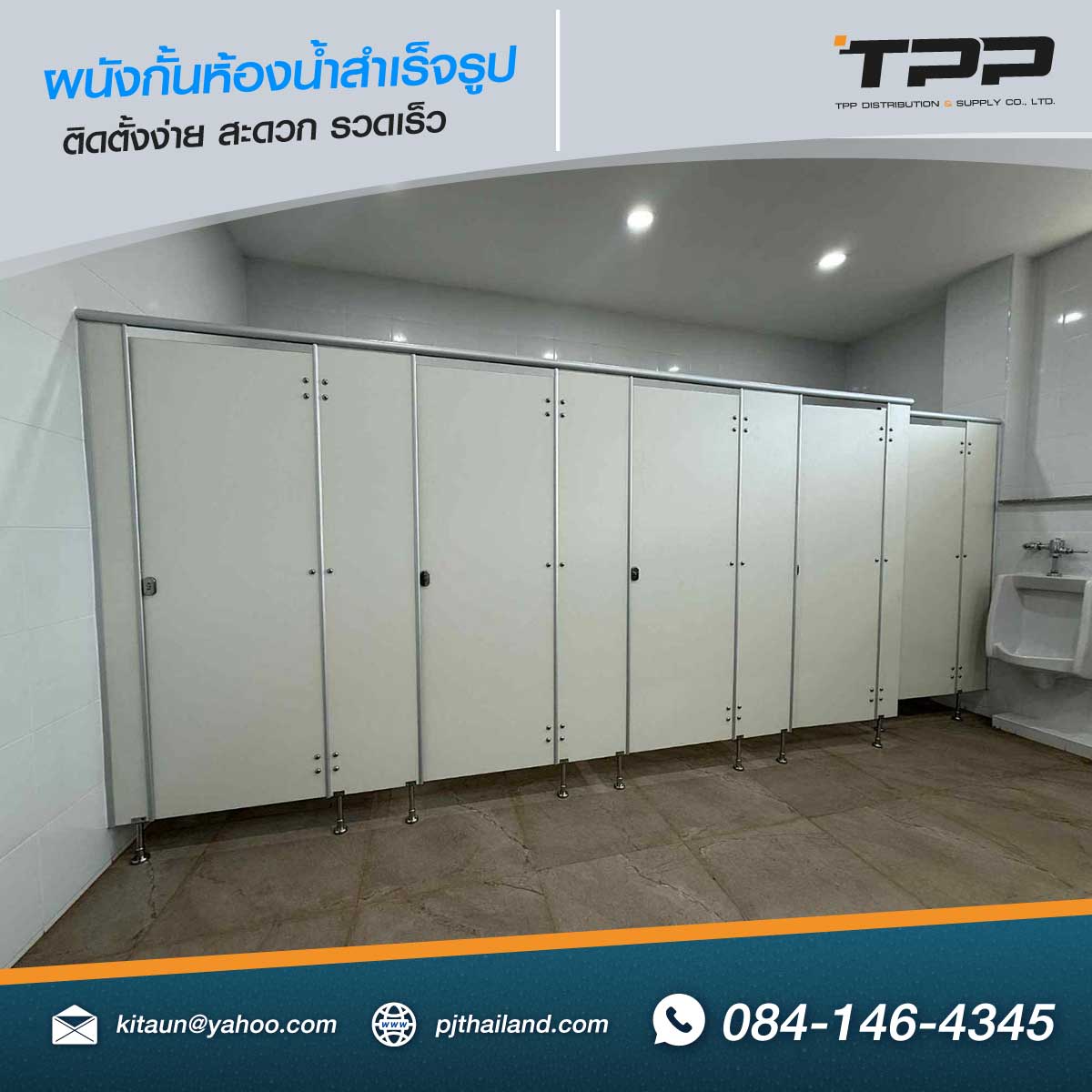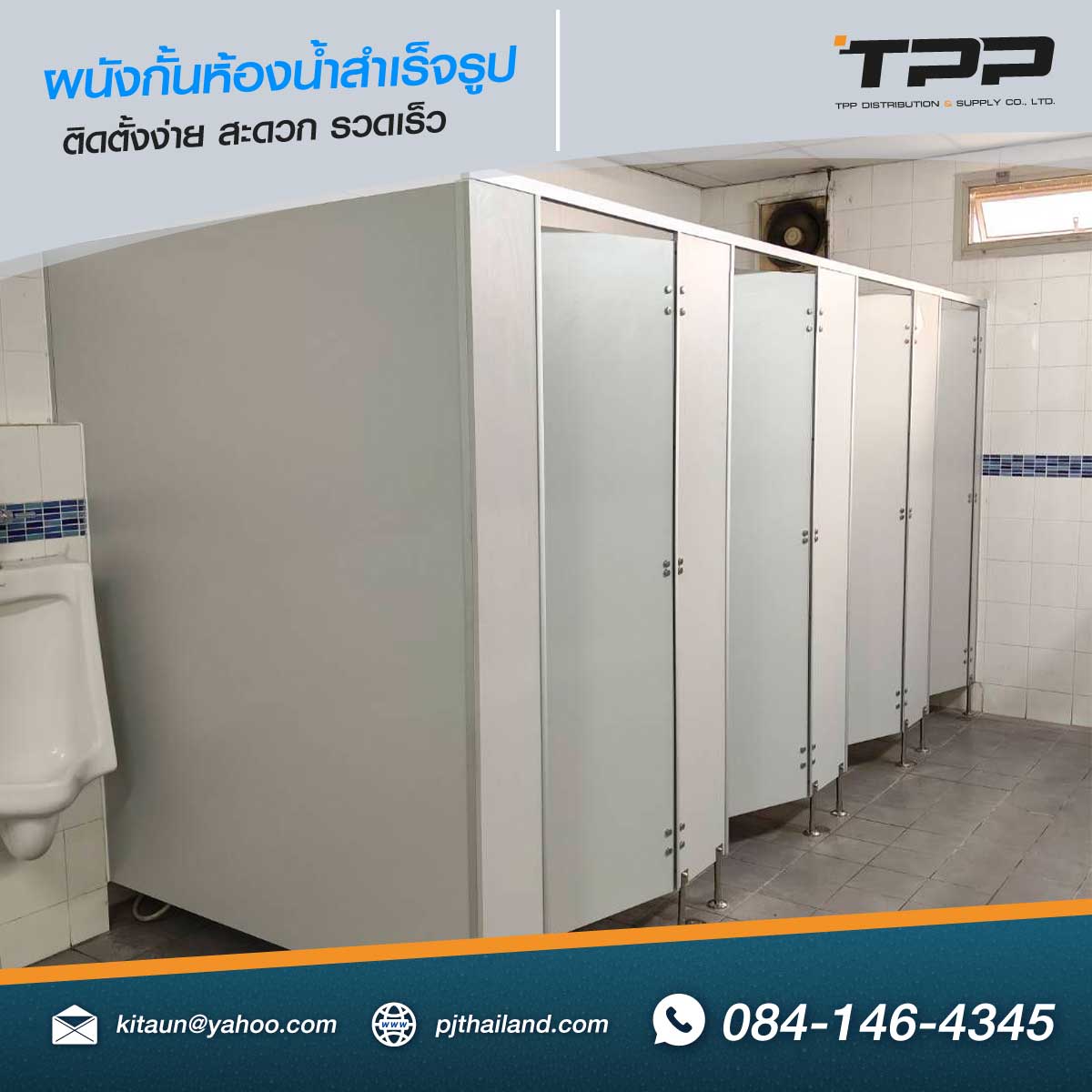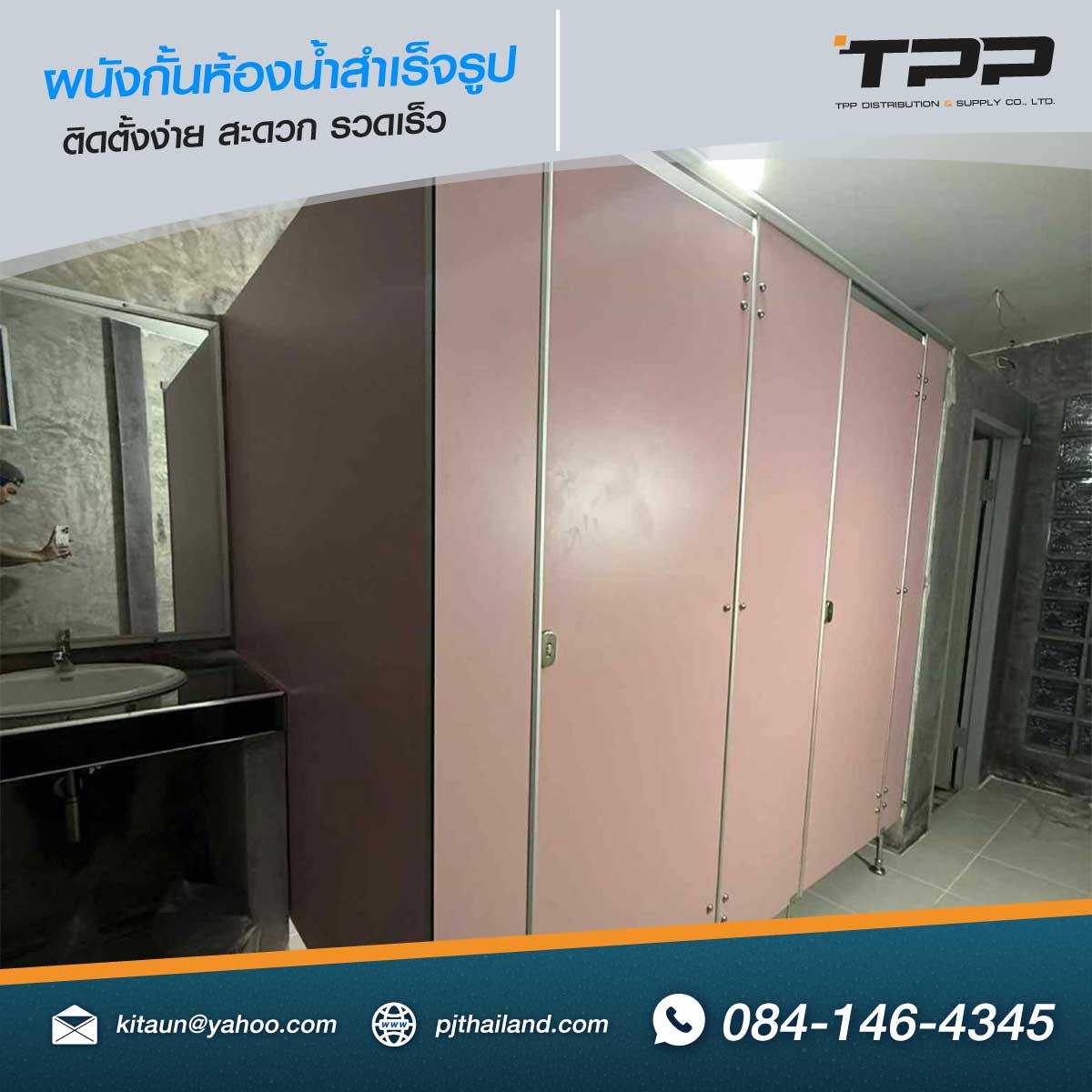 TPP ดำเนินการติดตั้งผนังกั้นห้องน้ำสำเร็จรูป วัสดุกันน้ำ รุ่น PN22 หน้างาน จังหวัดระยอง