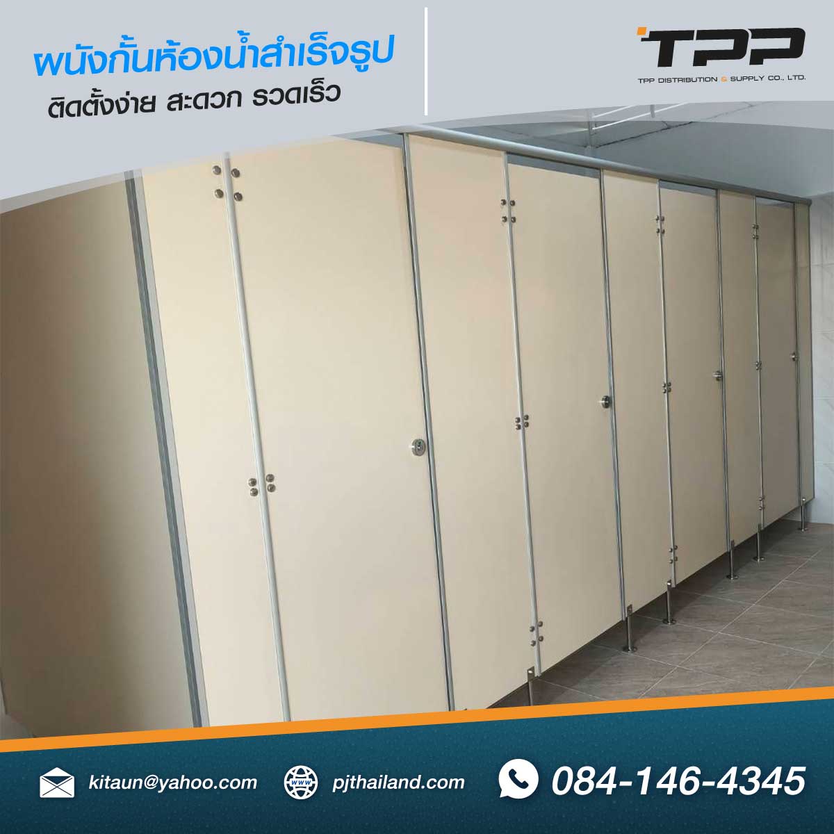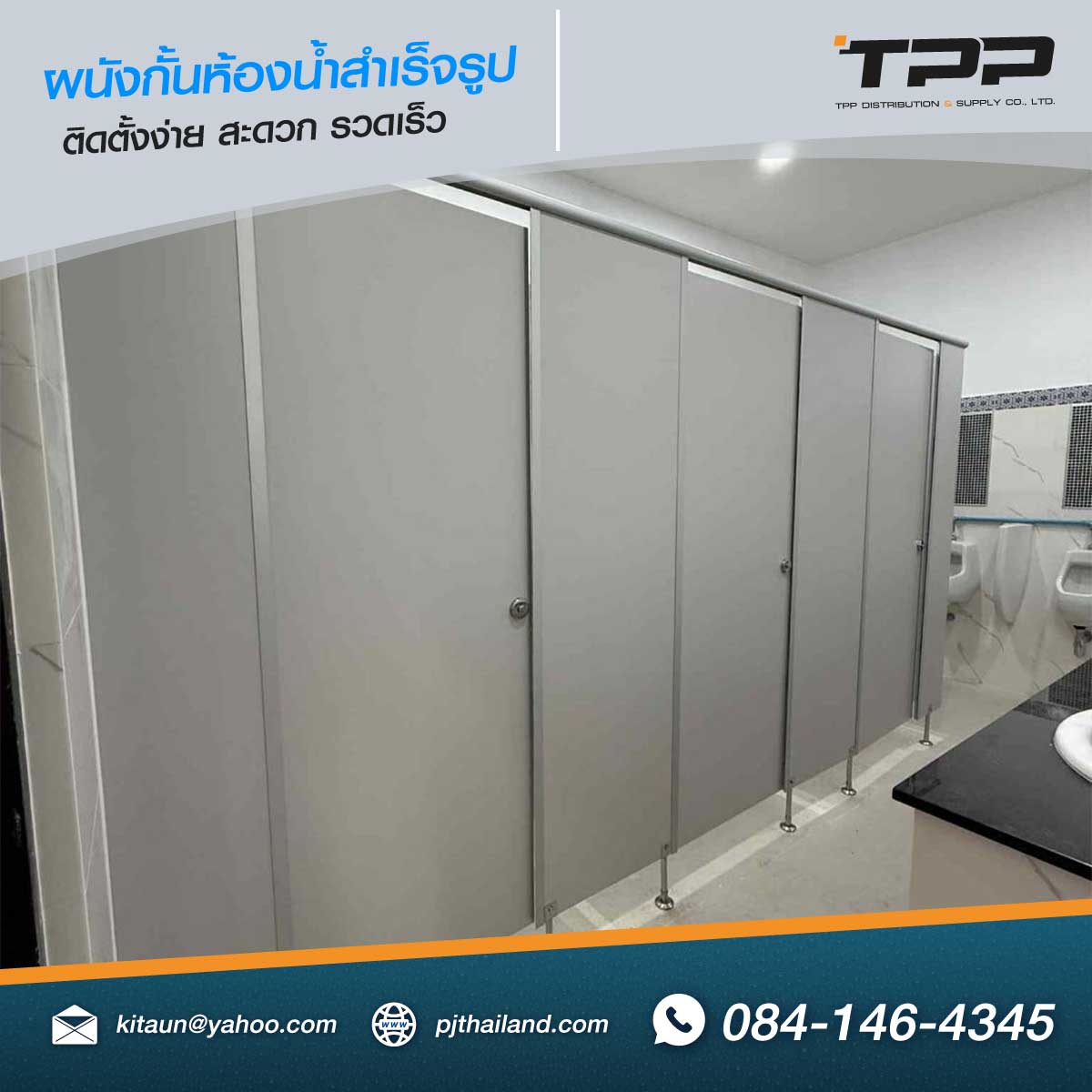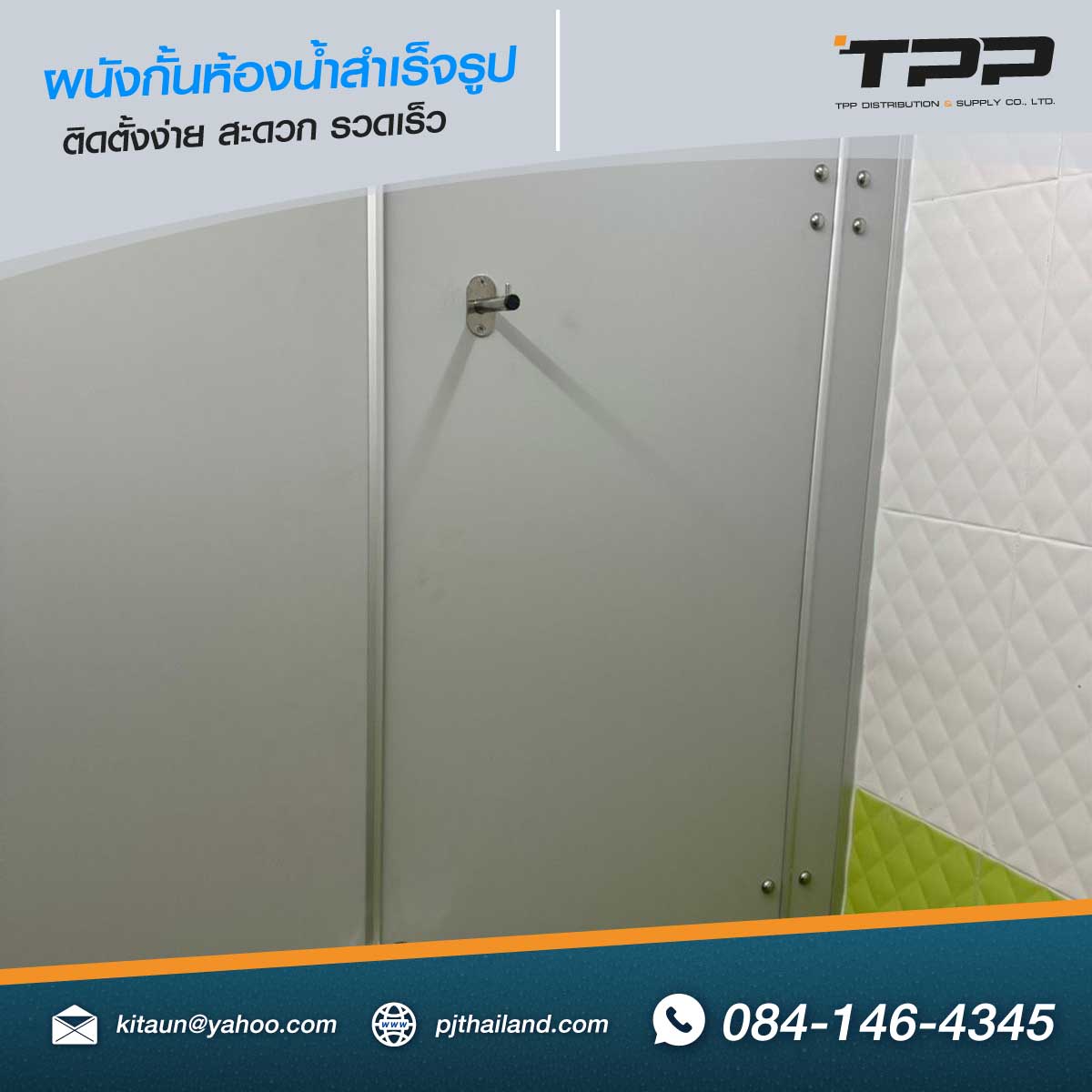 TPP ดำเนินการติดตั้งผนังกั้นห้องน้ำสำเร็จรูป วัสดุกันน้ำ รุ่น PN22 หน้างาน จังหวัดระยอง