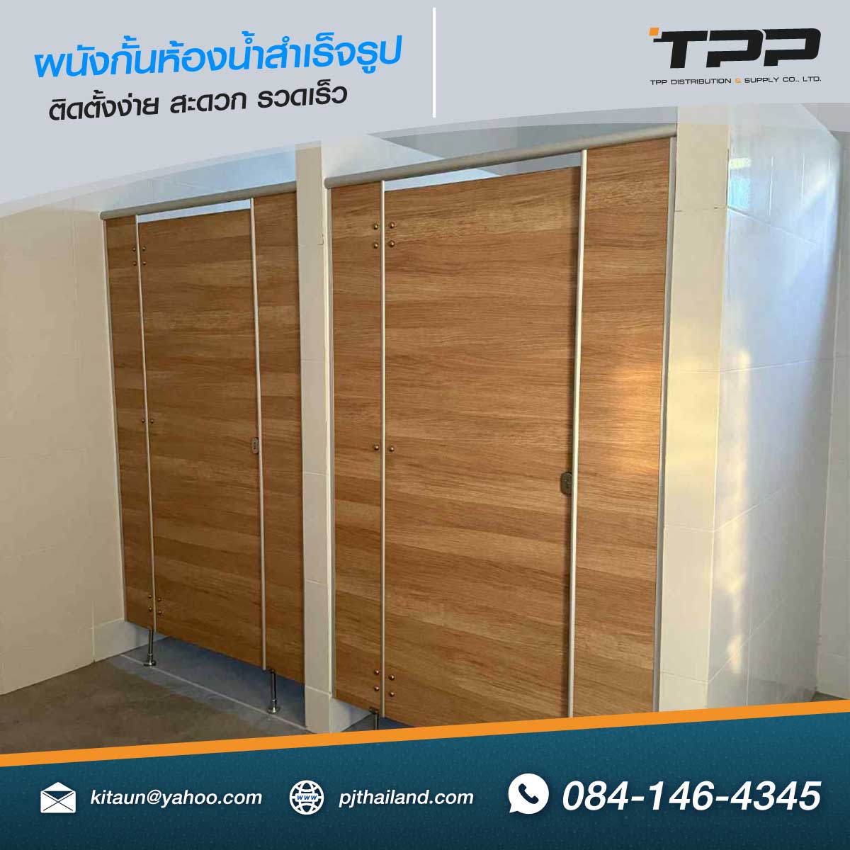 ผลงานการติดตั้งผนังกั้นห้องน้ำ The studio 7 สีครีม ปทุม