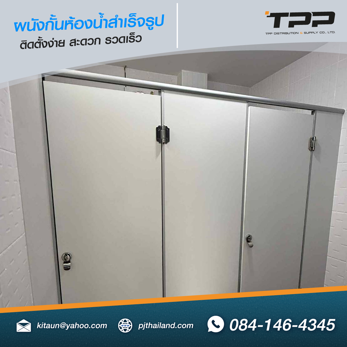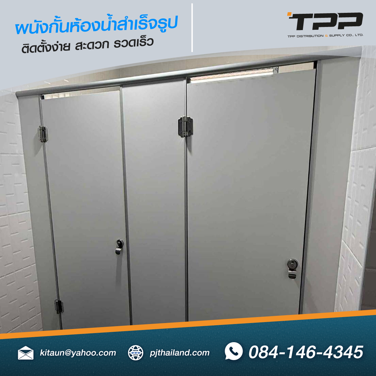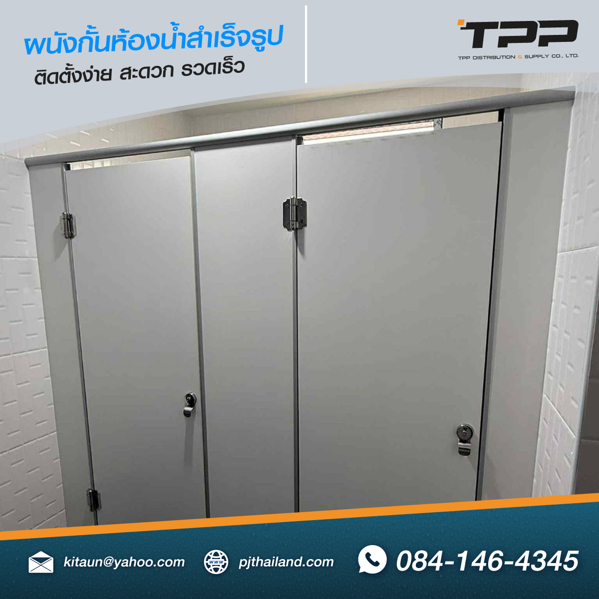 อีกหนึ่งผลงานคุณภาพจากทีมงาน TPP ติดตั้งผนังกั้นห้องน้ำกันชื้น สีเทา 4 ห้อง พื้นที่อ้อมน้อย