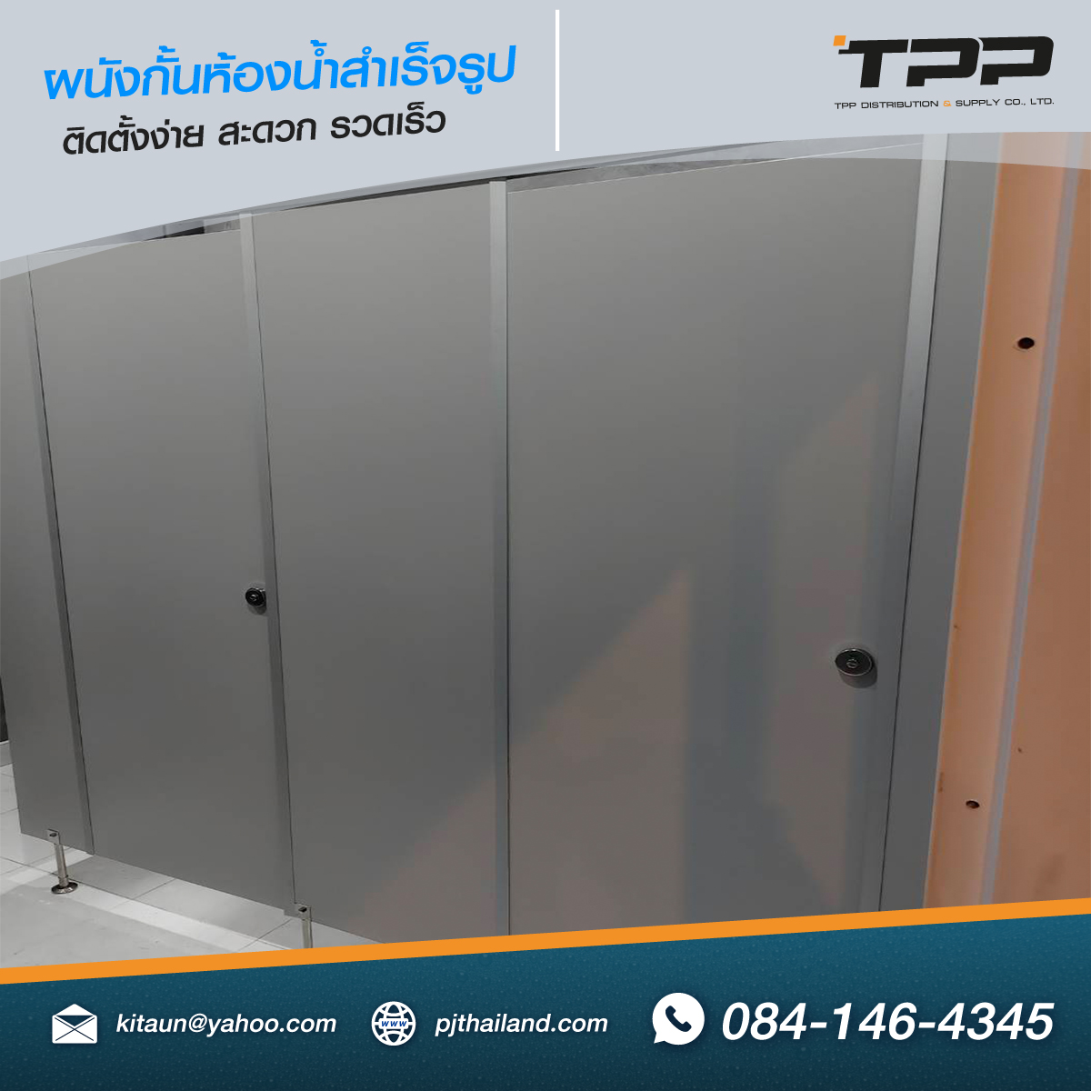 TPP ดิสทริบิวชั่น แอนด์ ซัพพลายส์ บจก. เข้าดำเนินการติดตั้งผนังกั้นห้องน้ำ โทนสีเทาเรียบหรู สำหรับหน้างานในจังหวัดสระบุรี