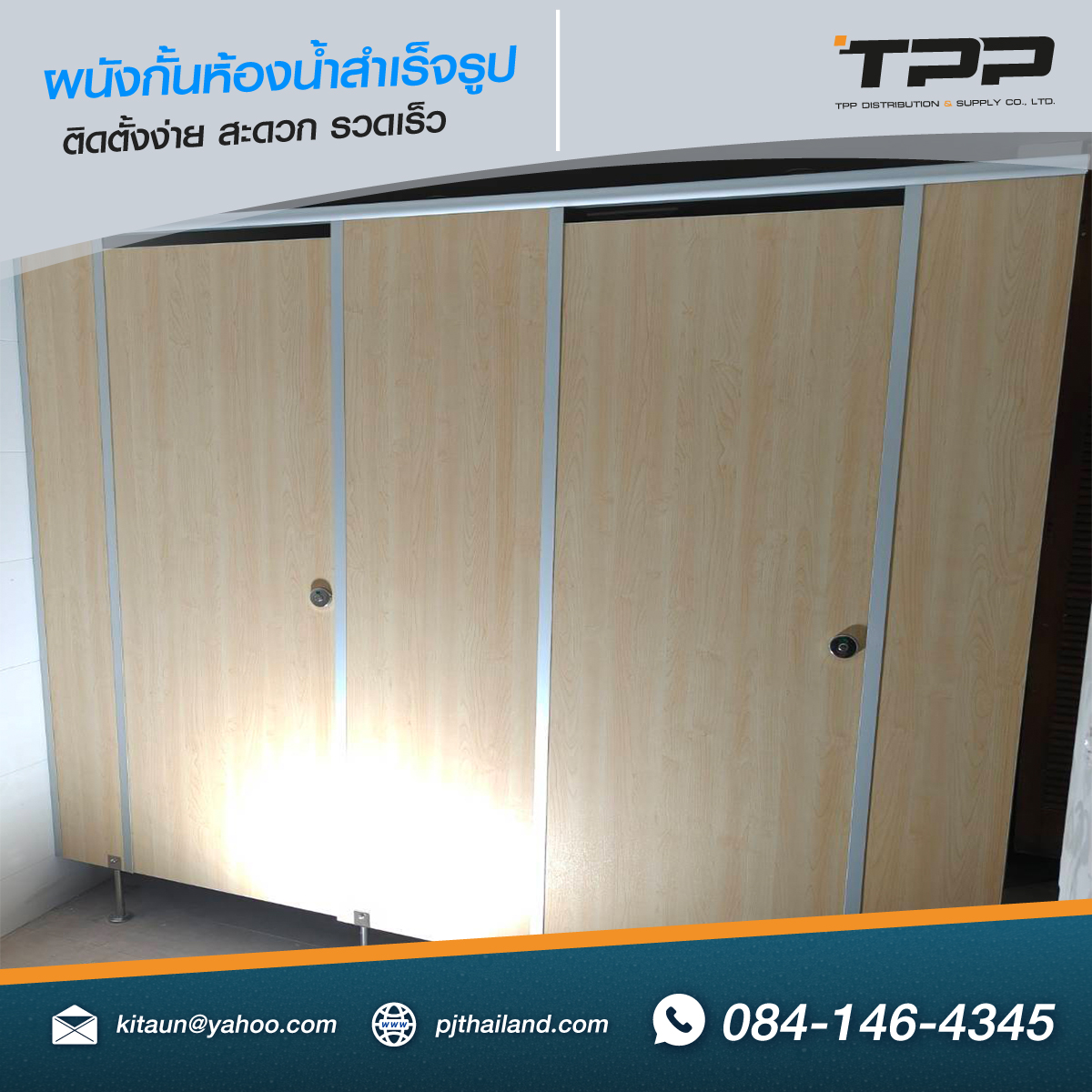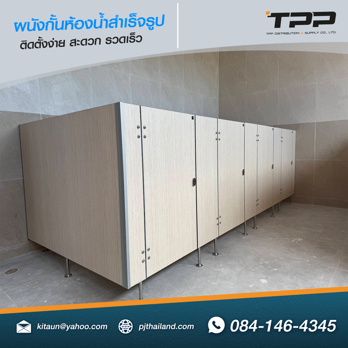 อีกหนึ่งผลงานคุณภาพจาก TPP Distribution ติดตั้งผนังกั้นห้องน้ำสำเร็จรูป กันน้ำ สีลายไม้แนวตั้ง PN24 โครงการเมืองทองธานี