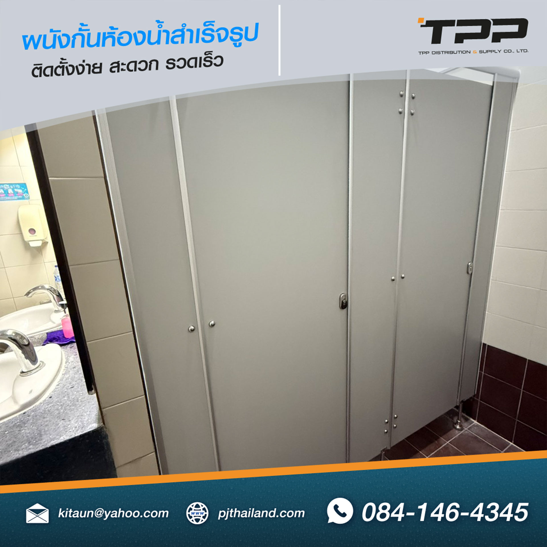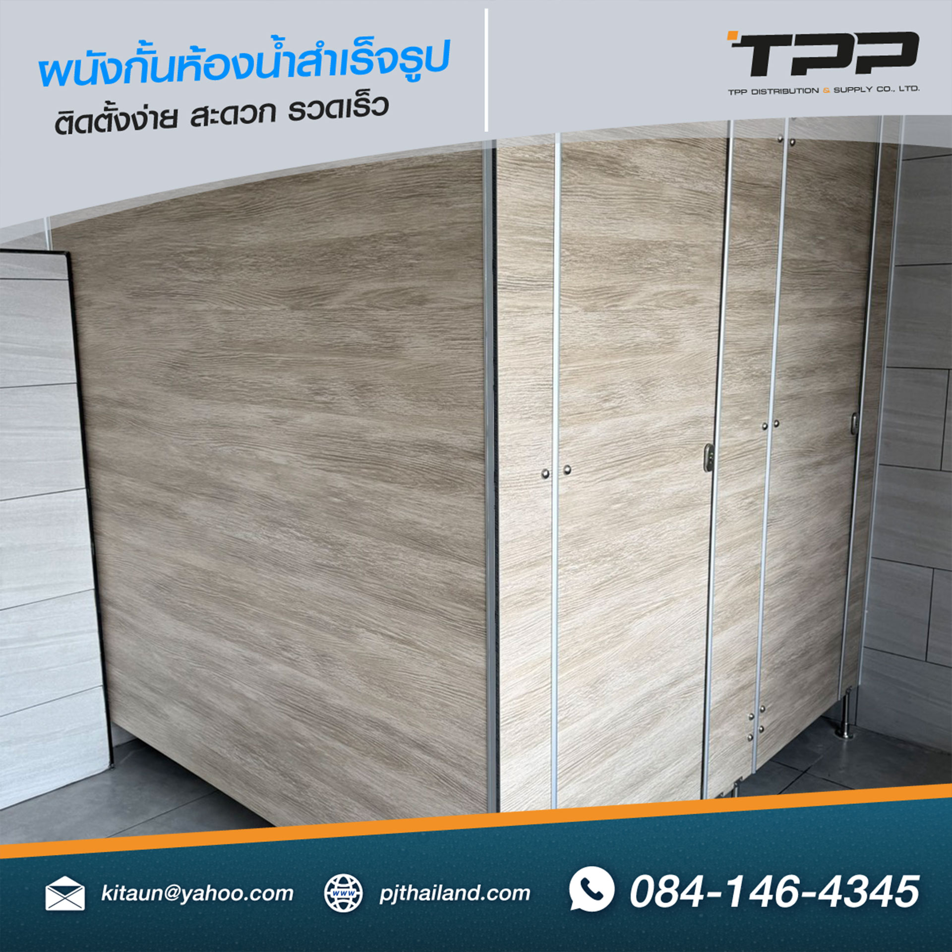 ผนังกั้นห้องน้ำที่ใช้ในโครงการนี้ผลิตจาก วัสดุกันความชื้นคุณภาพสูง ซึ่งเหมาะสำหรับพื้นที่ห้องน้ำที่มีการใช้งานบ่อย และต้องสัมผัสกับความชื้นตลอดเวลา สามารถทำความสะอาดได้ง่าย และช่วยลดการสะสมของเชื้อโรค