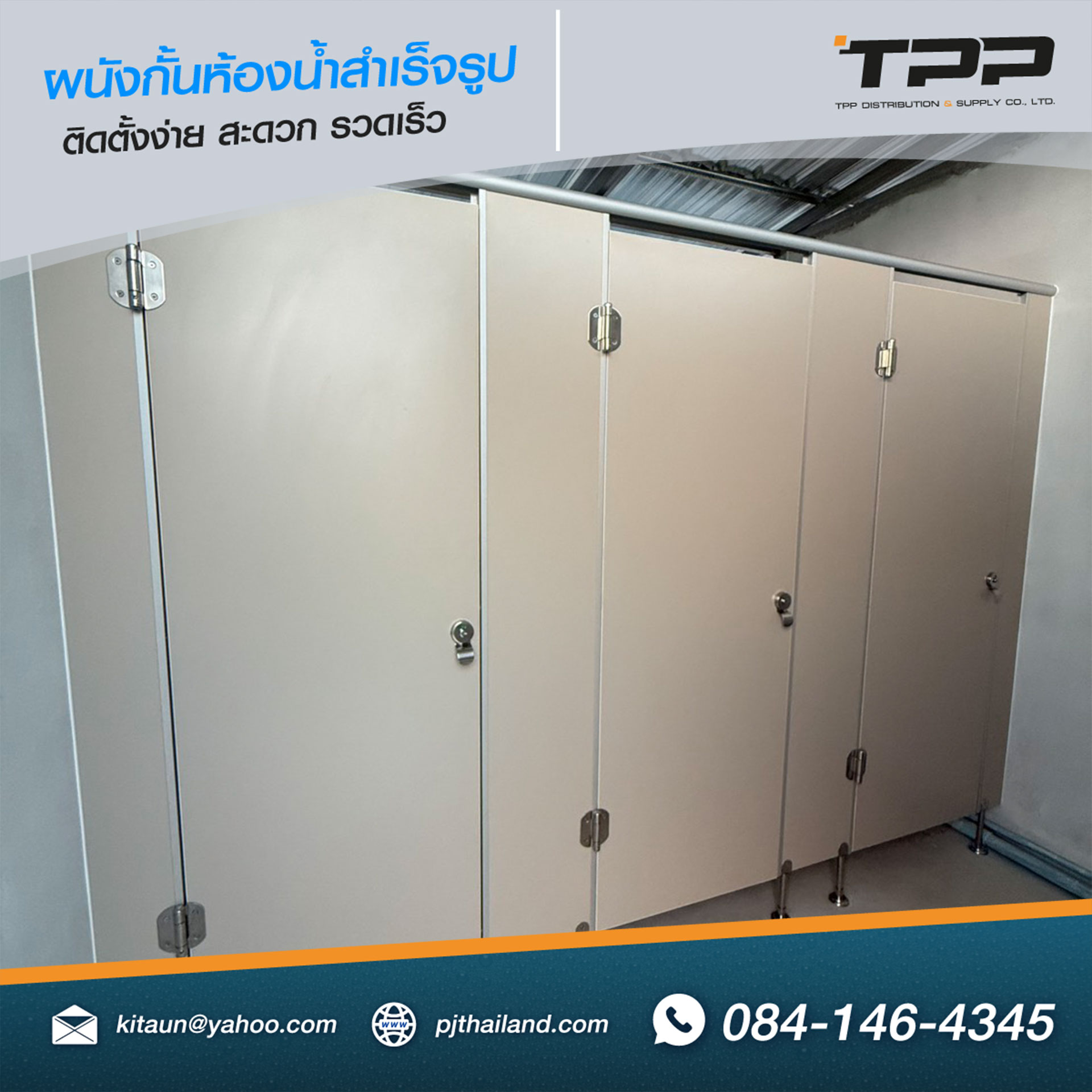 โครงสร้างของผนังกั้นห้องน้ำติดตั้งร่วมกับ อุปกรณ์สแตนเลสคุณภาพสูง เช่น