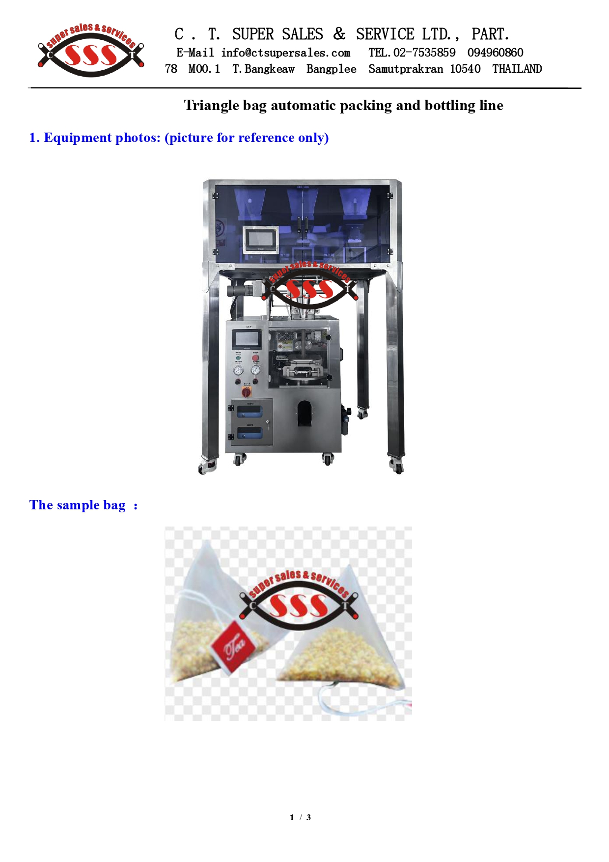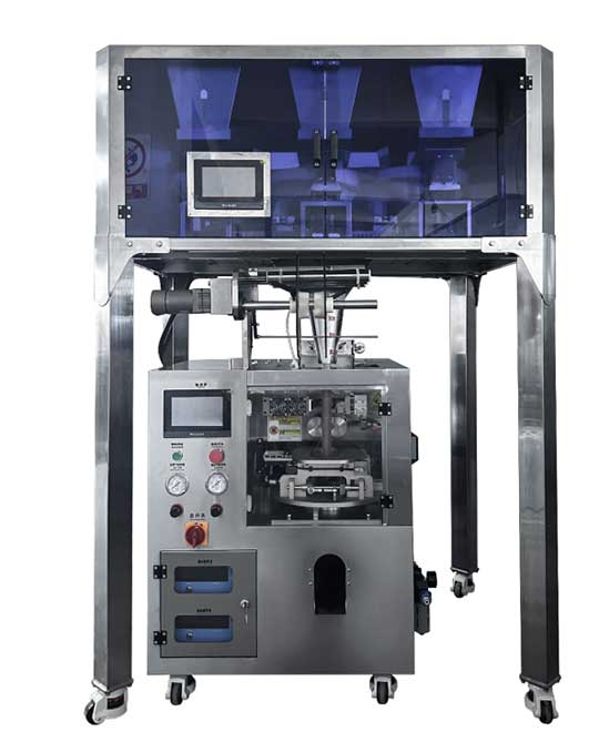 เครื่องบรรจุชาสมุนไพรลงซองไนล่อน / ข้าวโพดแบบระบบตาชั่งชา 6 หัว