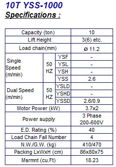 ชื่อ : รอกโซ่ รุ่น YSS-1000 Hoist