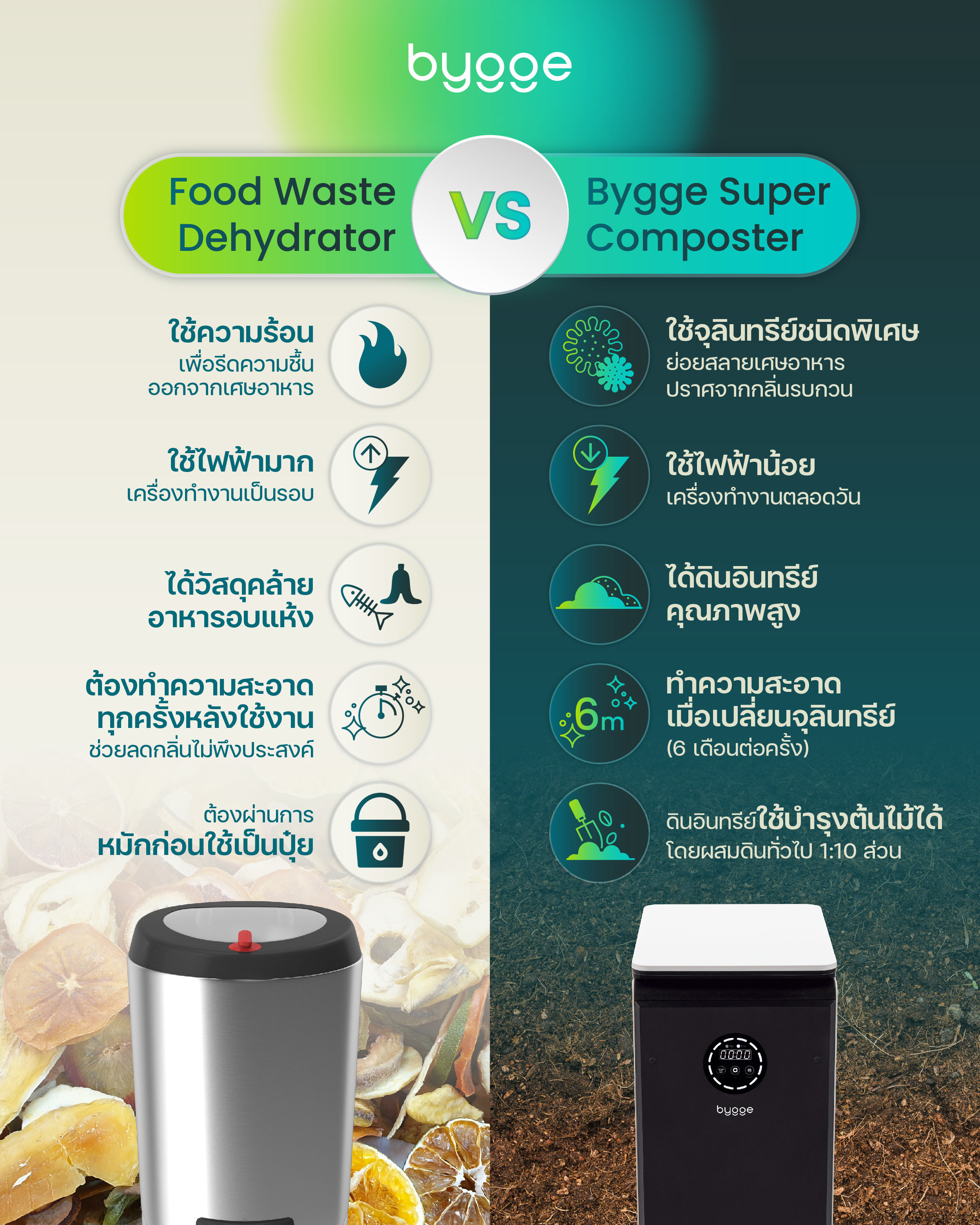 Bygge Super Composter รุ่น BG-19L คือเครื่องย่อยขยะเศษอาหารด้วยจุลินทรีย์ลักษณะเฉพาะ สามารถย่อยเศษอาหารได้สูงสุด 2 กิโลกรัมต่อวันภายใน 24 ชั่วโมง เปลี่ยนขยะเศษอาหารให้เป็นดินอินทรีย์อย่างมีประสิทธิภาพ ไร้กลิ่น ใช้งานง่าย เหมาะสำหรับบ้านพักอาศัย และองค์กรที่ต้องการลดขยะอย่างยั่งยืน