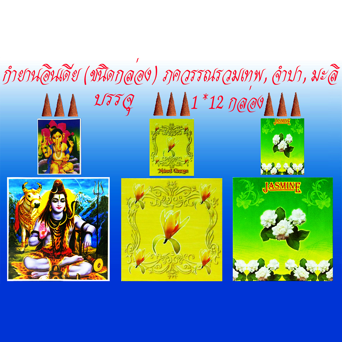 กำยานอินเดีย (ชนิดกล่อง) ภควรรณรวมเทพ, จำปา, มะลิ บรรจุ 1 *12 กล่อง