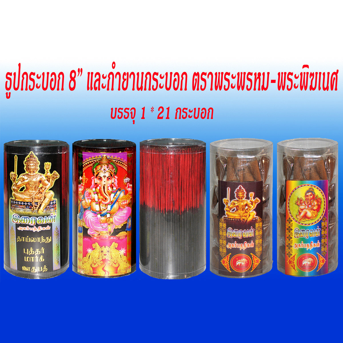 ธูปกระบอก 8" และกำยานกระบอก ตราพระพรหม-พระพิฆเนศ บรรจุ 1 * 21 กระบอก