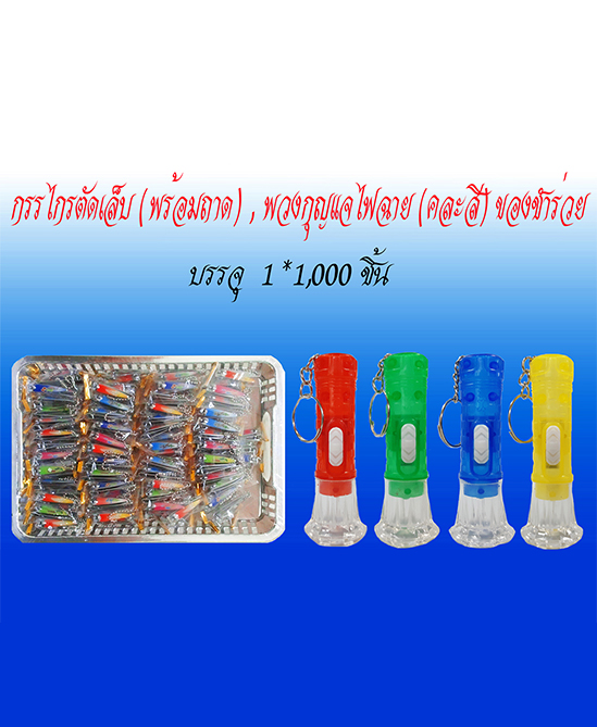 กรรไกรตัดเล็บ (พร้อมถาค) , พวงกุญแจไฟฉาย (คละลี) ของชำร่วย บรรจุ 1 *1,000 ชิ้น