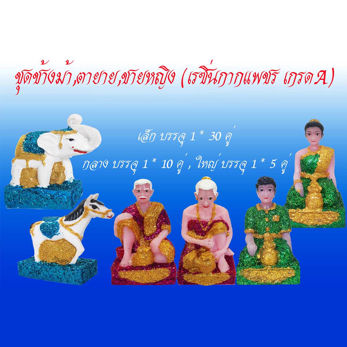 ชุดช้างม้า,ตายาย,ชายหญิง (เรซิ่นกากแพชร เกรด A)