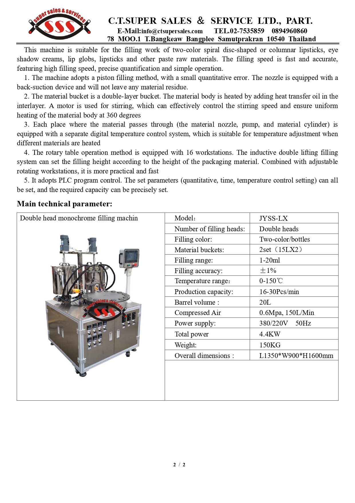 เครื่องบรรจุอัตโนมัติรุ่นนี้เหมาะสำหรับงานบรรจุลิปสติกแบบสองสี ลิปกลอส อายแชโดว์ครีม และวัตถุดิบเนื้อครีมหรือพาสต์ทุกประเภท ให้ความเร็วในการบรรจุสูง ปริมาณแม่นยำ และใช้งานง่าย