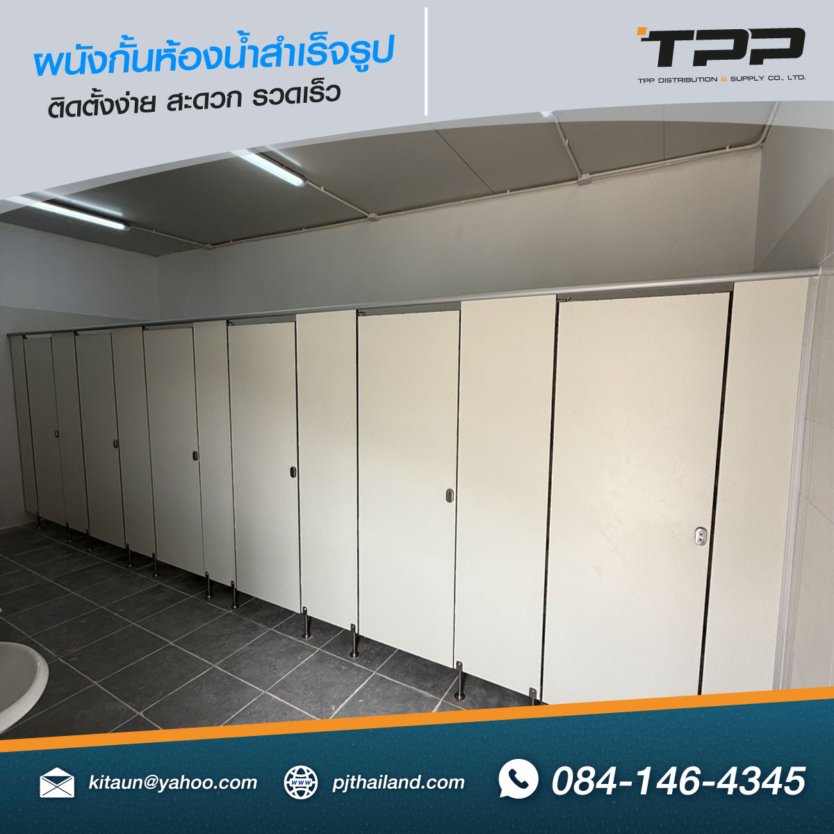 ผนังกั้นห้องน้ำลายไม้แนวนอน Beach หน้างานฉะเชิงเทรา ติดตั้งเรียบร้อย ด้วยมาตรฐานงานมืออาชีพจาก TPP Distribution & Supply
