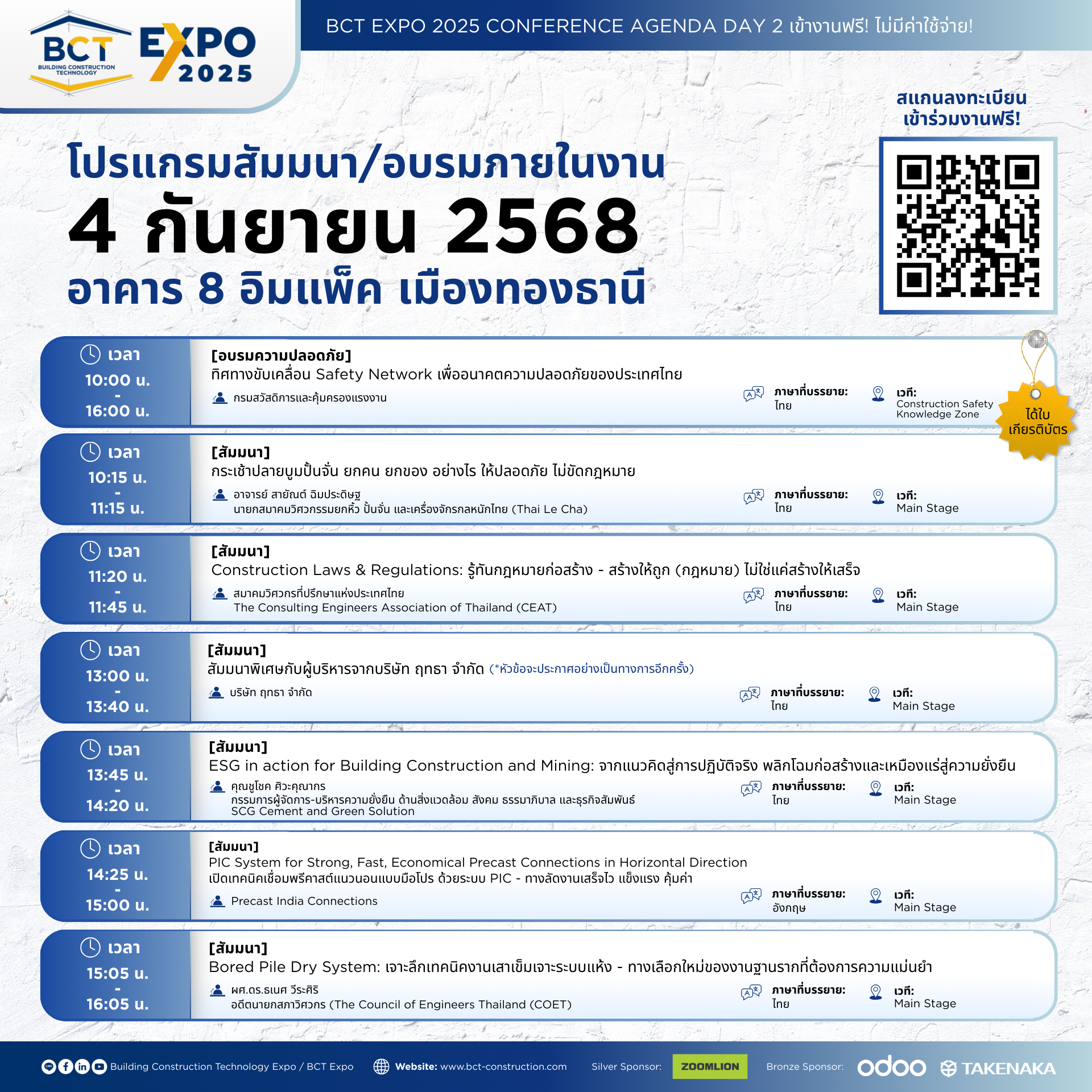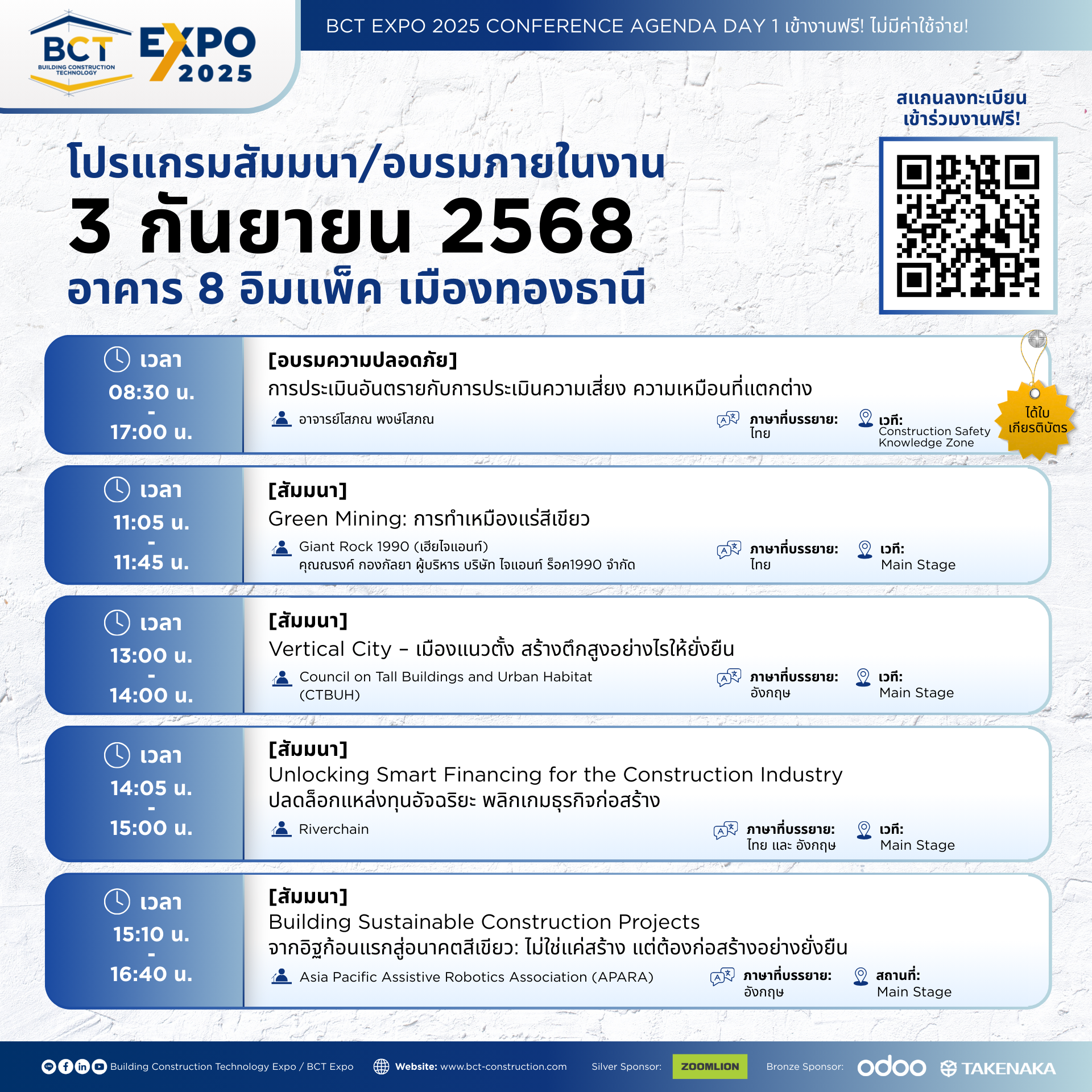 พบกับ อบรม/สัมมนาฟรี! ที่งาน #BCTEXPO2025 งานเดียว ครบจบ ทุกเรื่องก่อสร้างและเหมืองแร่