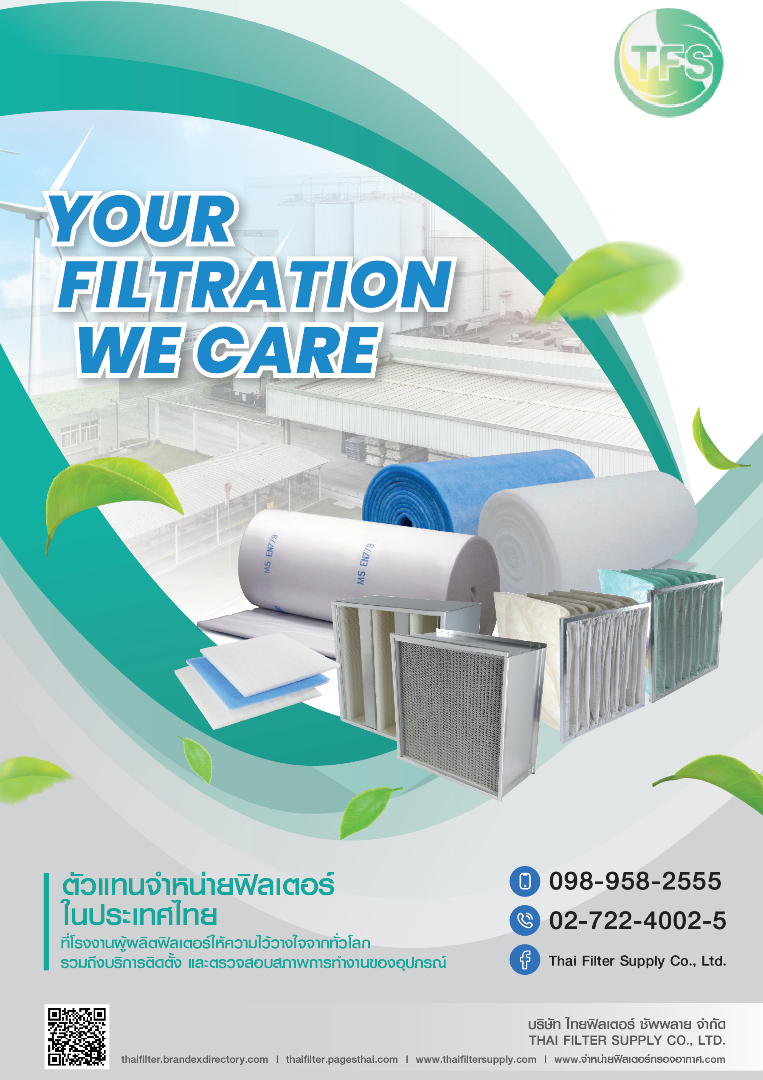 จากประสบการณ์ด้าน Filtration ทั้งอากาศและของเหลวมากว่า 30 ปี Thai Filter Supply ได้พัฒนาการคัดสรร Filter ชนิดต่างๆ ให้สอดคล้องกับความต้องการของลูกค้าทั้งในด้านคุณภาพ ราคา และ การบริการหลังการขาย ที่เป็นจุดเด่นของเรามาตลอด การดำเนินงานภายใต้ความพึงพอใจสูงสุดของลูกค้า เริ่มต้นตั้งแต่การคัดสรร Filter จากโรงงานผู้ผลิตทั้งจาก ยุโรป อเมริกา และ เอเชีย ซึ่งเป็นโรงงานผู้ผลิตแถวหน้าของภูมิภาคต่างๆ ทั่วโลก ที่ตอบสนองทั้งเทคโนโลยี ปริมาณการผลิต และ การจัดส่งที่มีคุณภาพสูง การเก็บรักษาสินค้าเพื่อรักษาคุณภาพและจำนวนที่เพียงพอต่อความต้องของลูกค้า การจัดส่งและการติดตั้งที่ตรงกำหนดและเตรียมพร้อมในกรณีเร่งด่วน ส่งผลให้เราเป็นหนึ่งในบริษัทตัวแทนจำหน่าย Filter ในประเทศไทยที่ก่อตั้งและถือหุ้นโดยคนไทย 100% ที่มีโรงงานผู้ผลิต Filter ให้ความไว้วางใจมากมายจากทั่วโลก อาธิ GEA Delbag Luftfilter Andreae filters